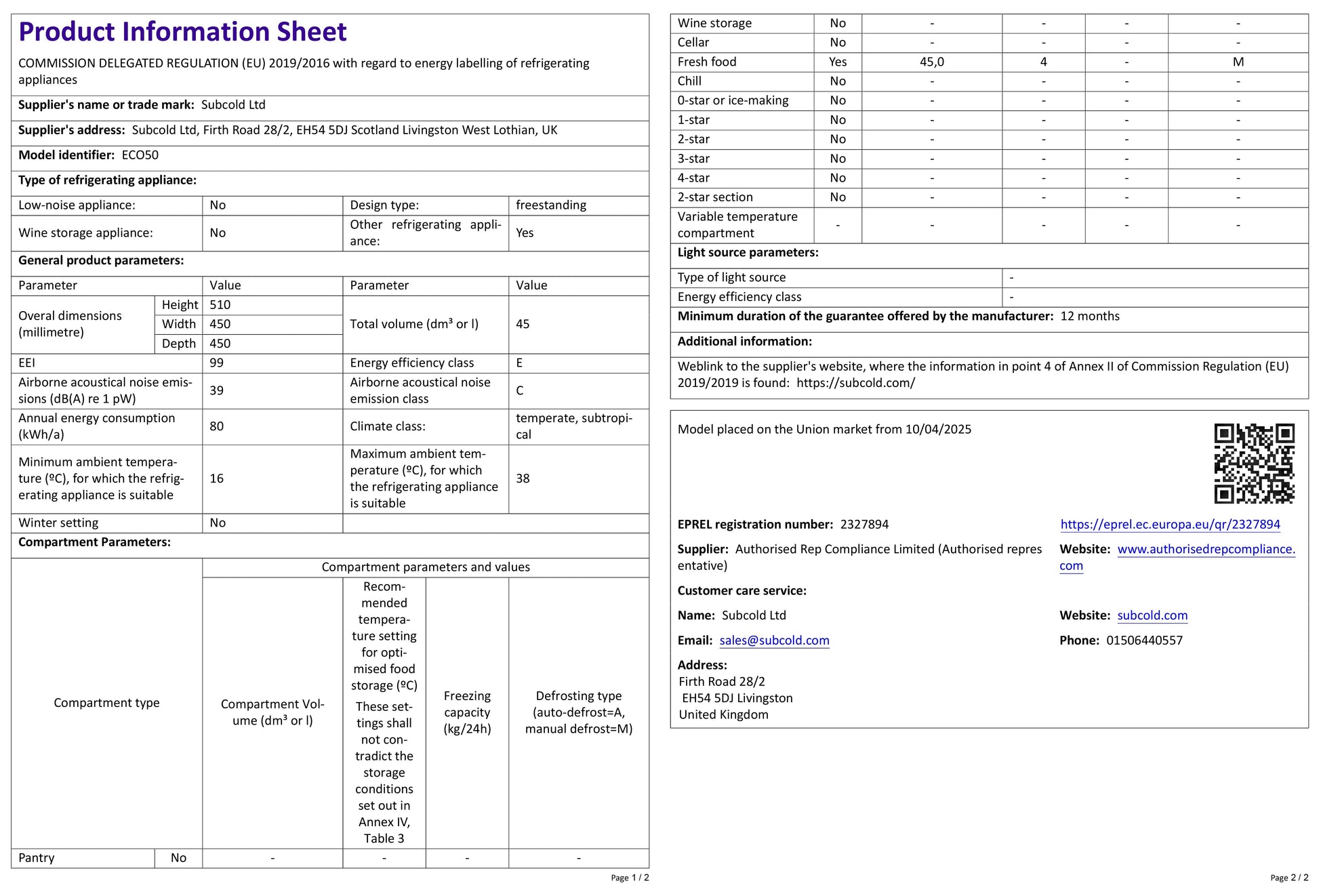The Subcold Eco50 is equipped with advanced compressor technology cooling for optimum performance. It is a very economical fridge with an impressive energy consumption of only 80kWh/annum!