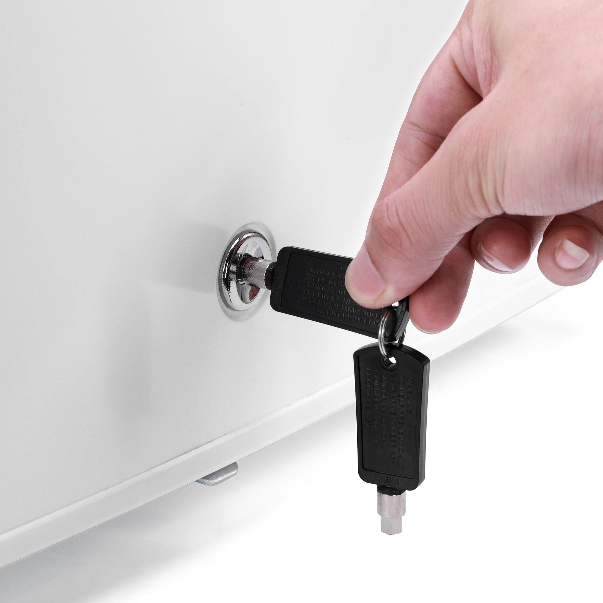 A mini fridge with built-in security lock to keep your alcohol beverages safe and secure from unauthorised access. A set of 2 keys are provided with the fridge.