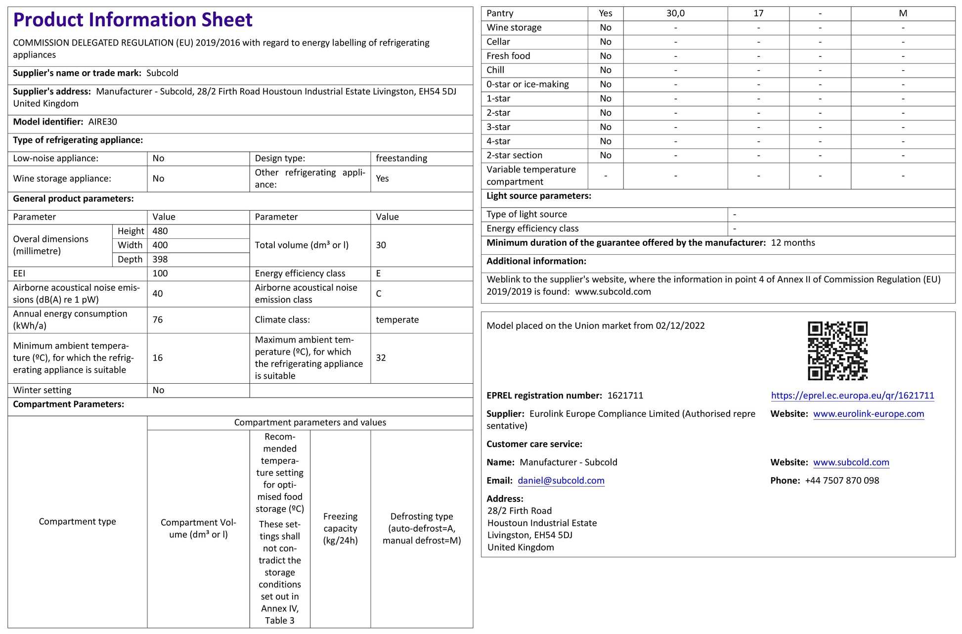 The Subcold Aire30 is equipped with premium thermoelectric technology cooling for optimum performance. It is a very economical fridge with an impressive energy consumption of only 76kWh / per Year