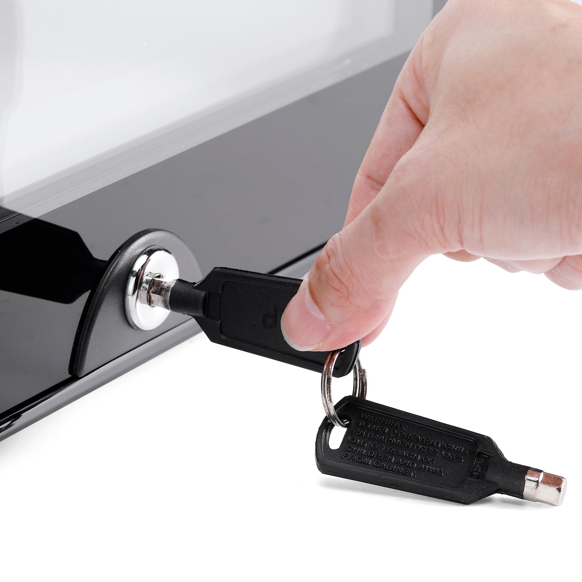 A mini fridge with a built-in security lock to keep your alcoholic beverages safe and secure from unauthorised access. A set of two keys is provided with the fridge.