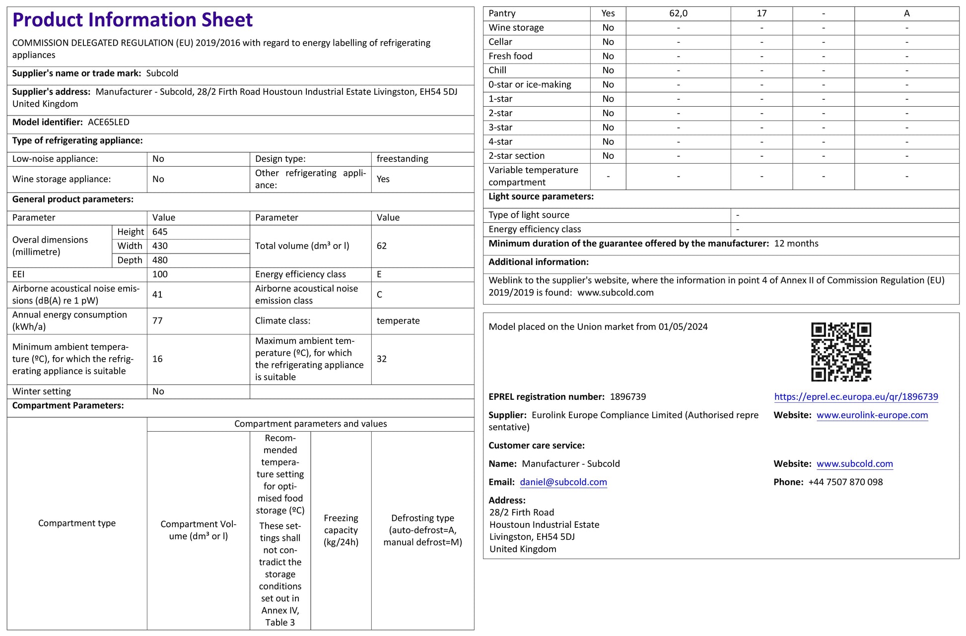 With an energy efficiency of only 77kWh/annum, ACE65 Beer Fridge is not only effective but also eco-friendly. Its freestanding design makes it a versatile addition to any room, from kitchens and home bars to office spaces. Enjoy the perfect blend of functionality, style, and efficiency with the Subcold ACE65 Beer Fridge.