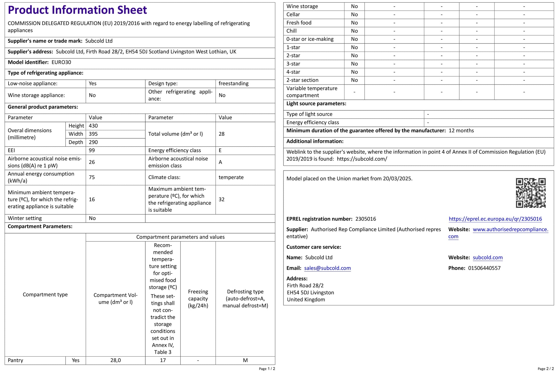 - Subcold Euro30 Cool Box