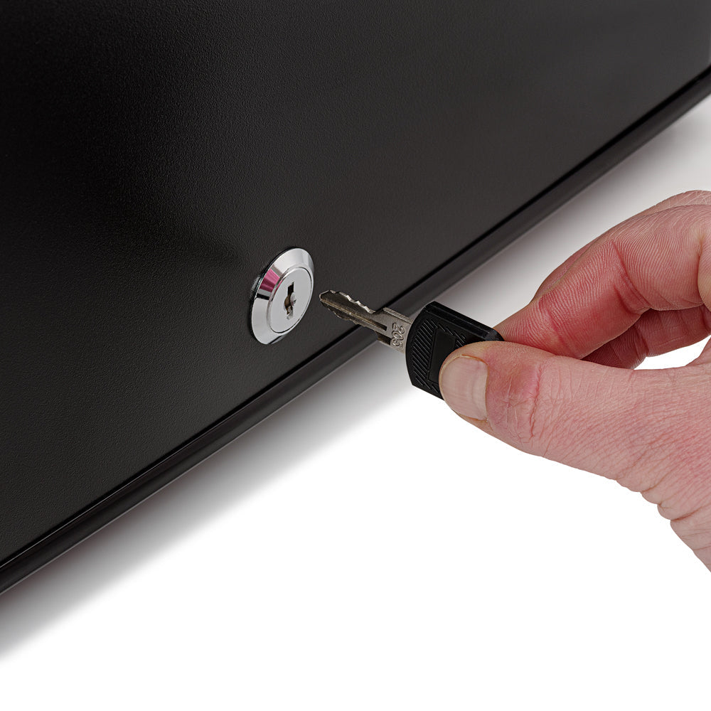 A mini fridge with a built-in security lock to keep your alcoholic beverages safe and secure from unauthorised access. A set of two keys is provided with the fridge.