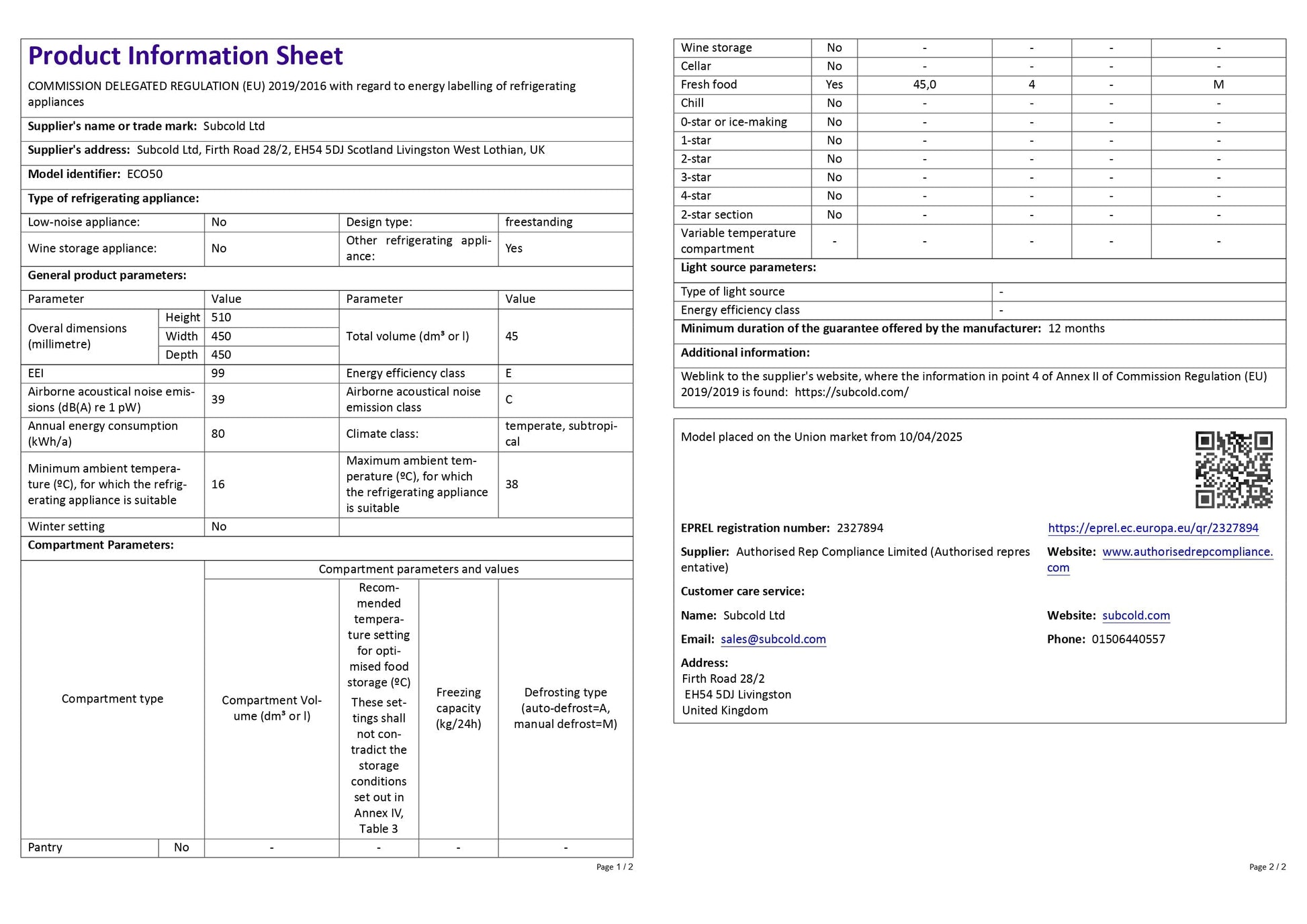 The Subcold Eco50 is equipped with advanced compressor technology cooling for optimum performance. It is a very economical fridge with an impressive energy consumption of only 80kWh/annum!